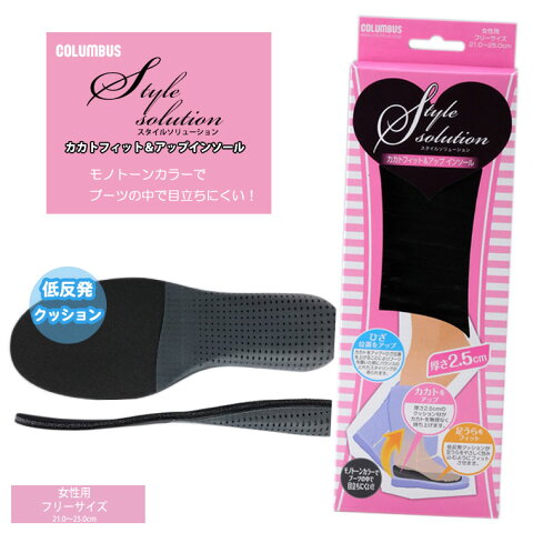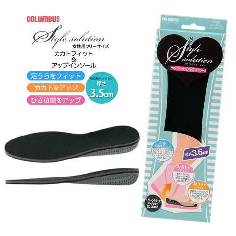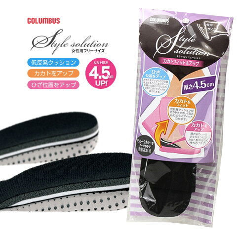 COLUMBUS スタイルソリューション カカトフィット&アップ 低反発クッション インヒール 4.5cm シークレット 美脚 ブラック ウエッジソール 歩きやすい レディース インソール 衝撃吸収 疲労予防 防痛 肉厚 ふかふか クッション 中敷き